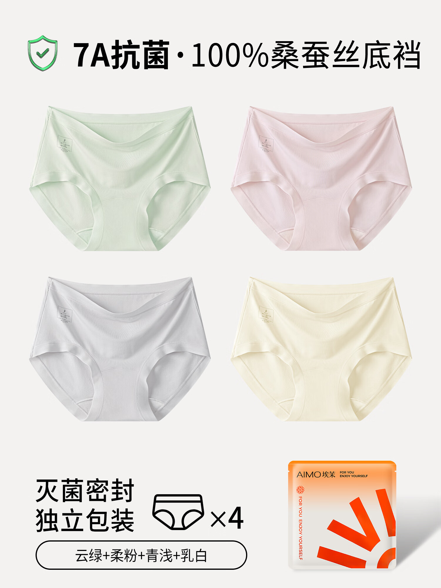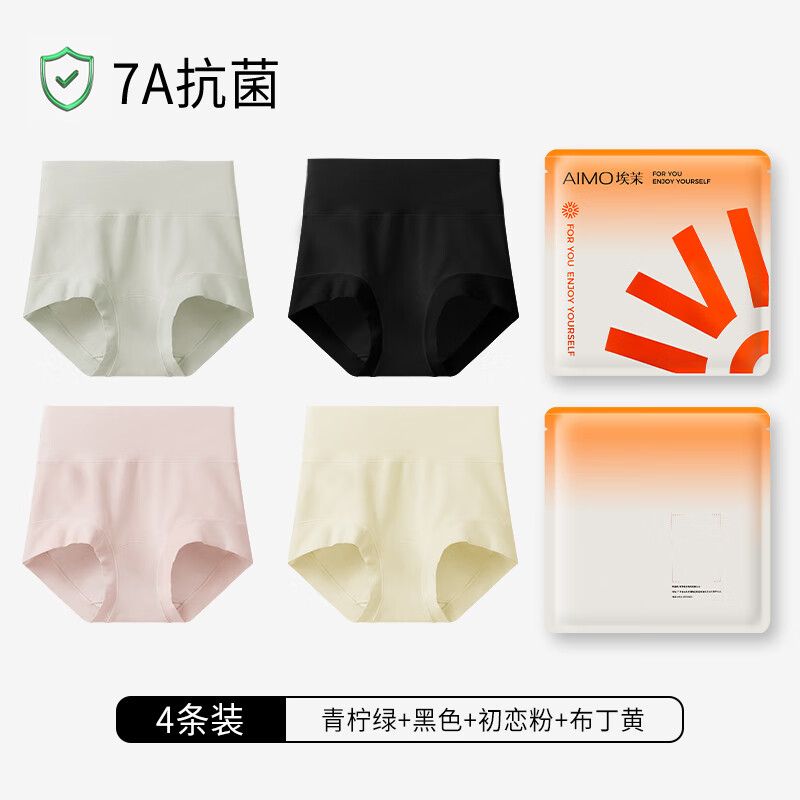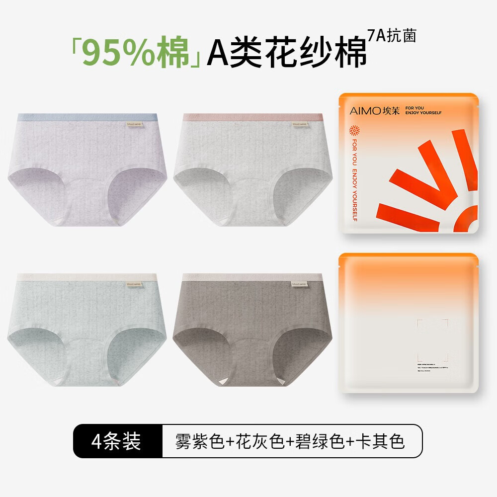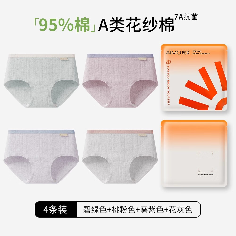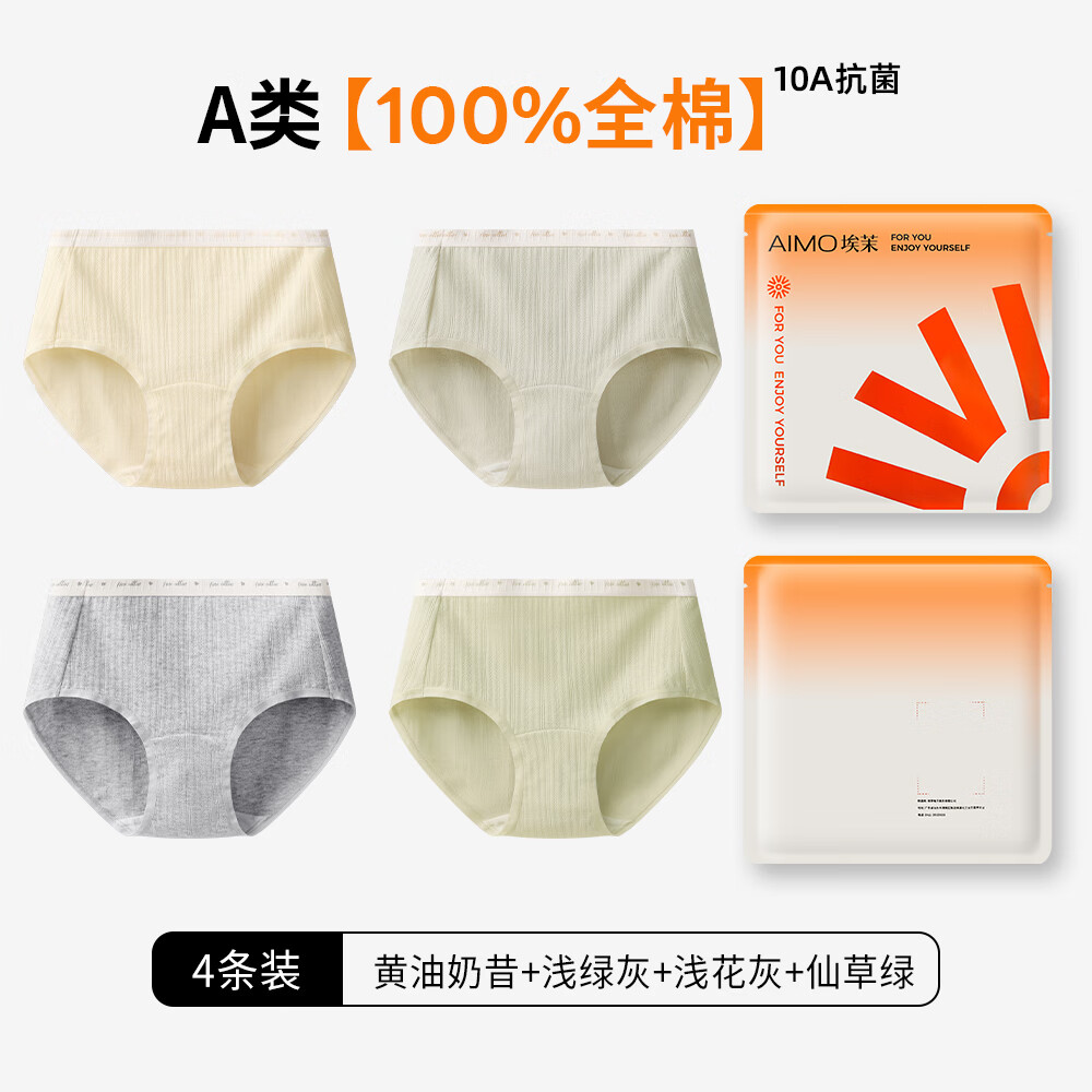 埃茉内裤女士纯棉抗菌全棉裆莫代尔无痕不夹臀a类中腰少女生三角裤头 云绿+柔粉+青浅+乳白 4条 M