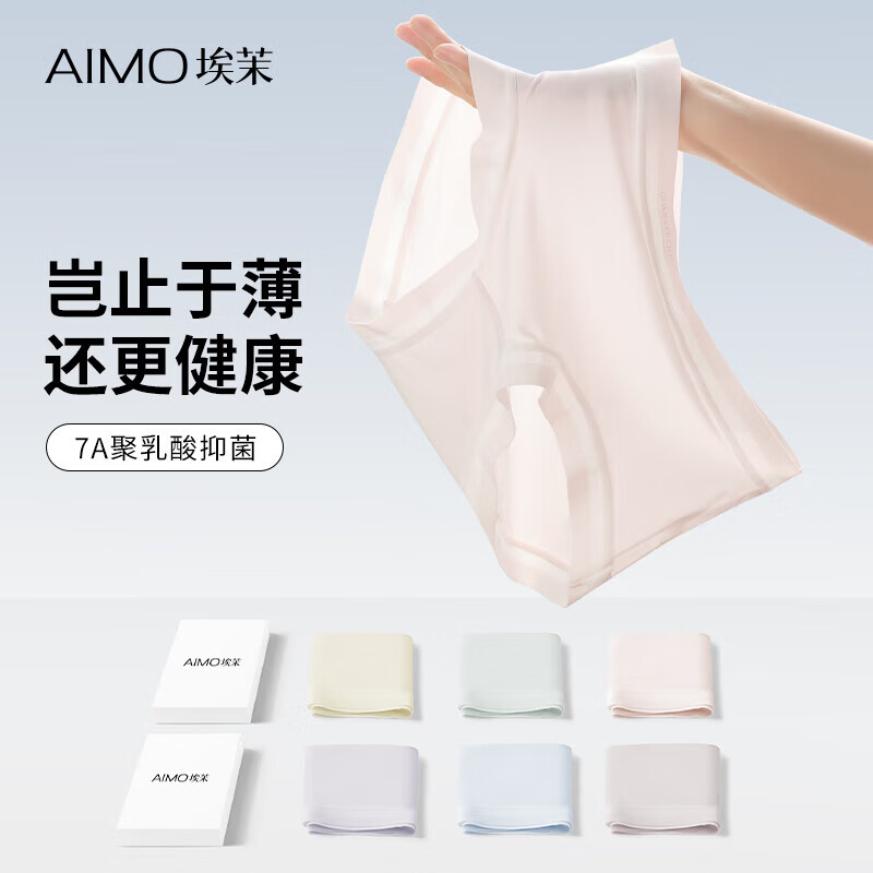 埃茉无痕内裤女生夏季薄款冰丝面膜乳酸菌中腰女士三角短裤防夹臀
