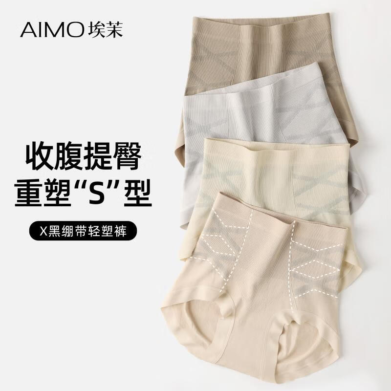 埃茉黑绷带高腰收腹产后塑形无痕提臀内裤女 白土布+巴黎灰XL