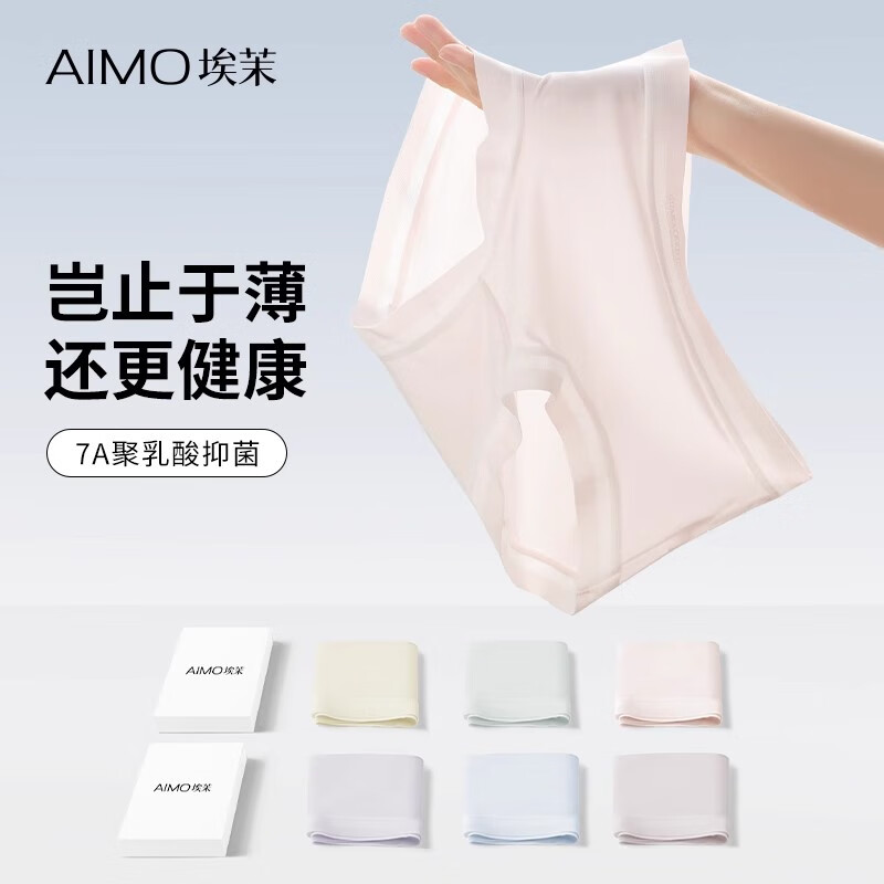 埃茉埃茉无痕内裤女生夏季薄款冰丝面膜乳酸菌中腰女士三角短裤防夹臀