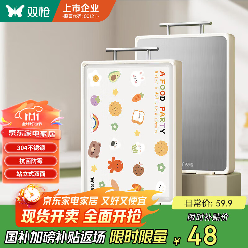 双枪304不锈钢+塑料切菜板双面砧板案板面板抗菌防霉41*27.5cm