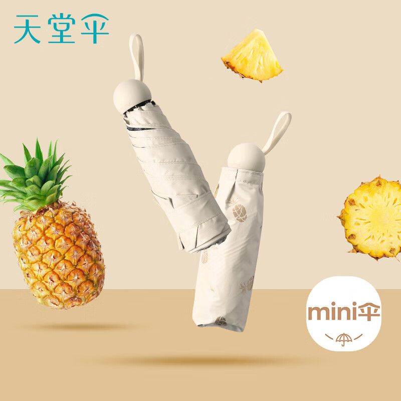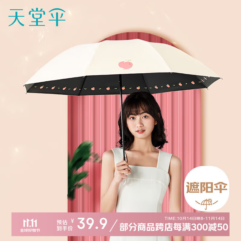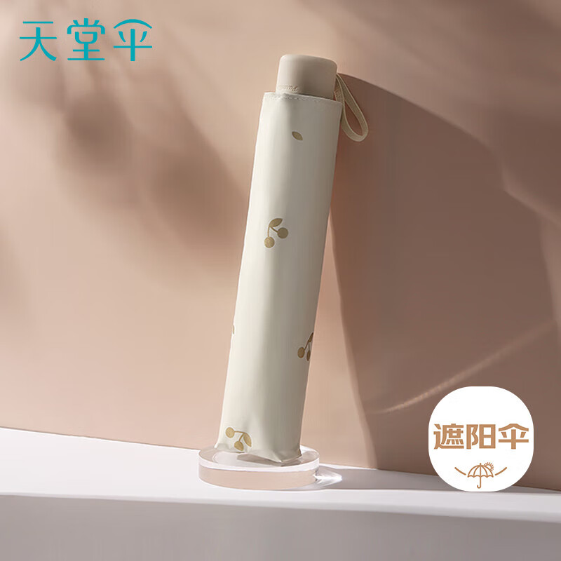 天堂 防紫外线阳伞三折 遮阳伞黑胶防晒伞蜜桃图案晴雨伞 米黄