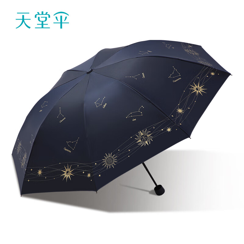 天堂伞新品黑胶防晒防紫外线太阳伞遮阳便携折叠晴雨伞女两用男士 闪耀星河-午夜蓝