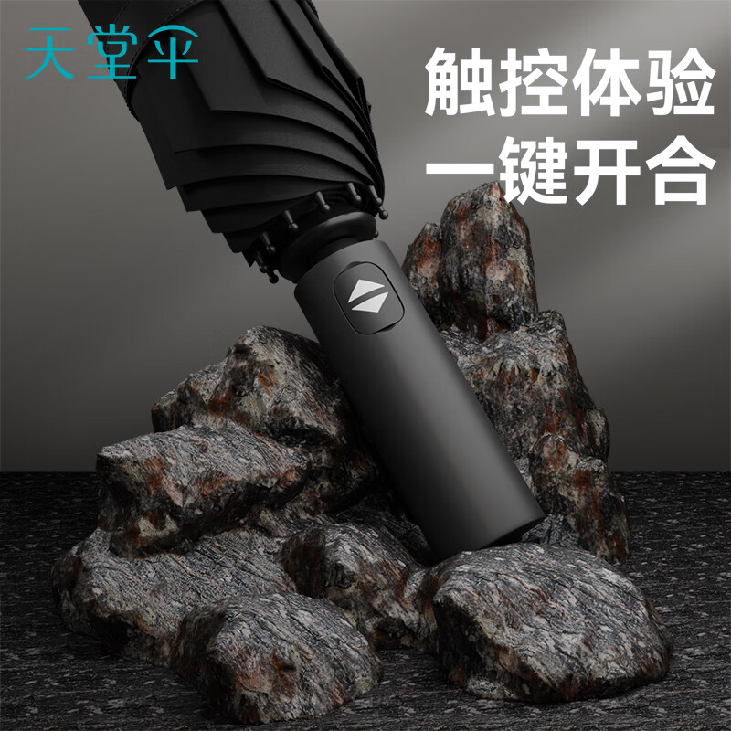 天堂 全自动晴雨伞三折 12骨全自动黑胶防晒晴雨伞超大双人伞 黑色