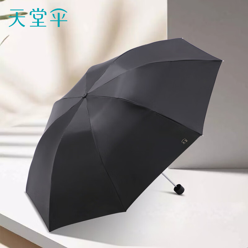 天堂 防紫外线晴雨伞三折 雨伞黑胶防晒太阳伞遮阳晴雨伞 黑色
