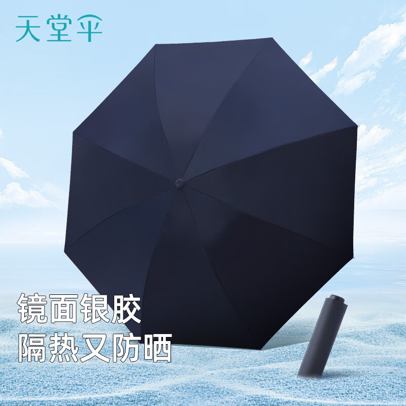 天堂 防紫外线晴雨伞三折 雨伞黑胶防晒太阳伞遮阳晴雨伞 午夜蓝