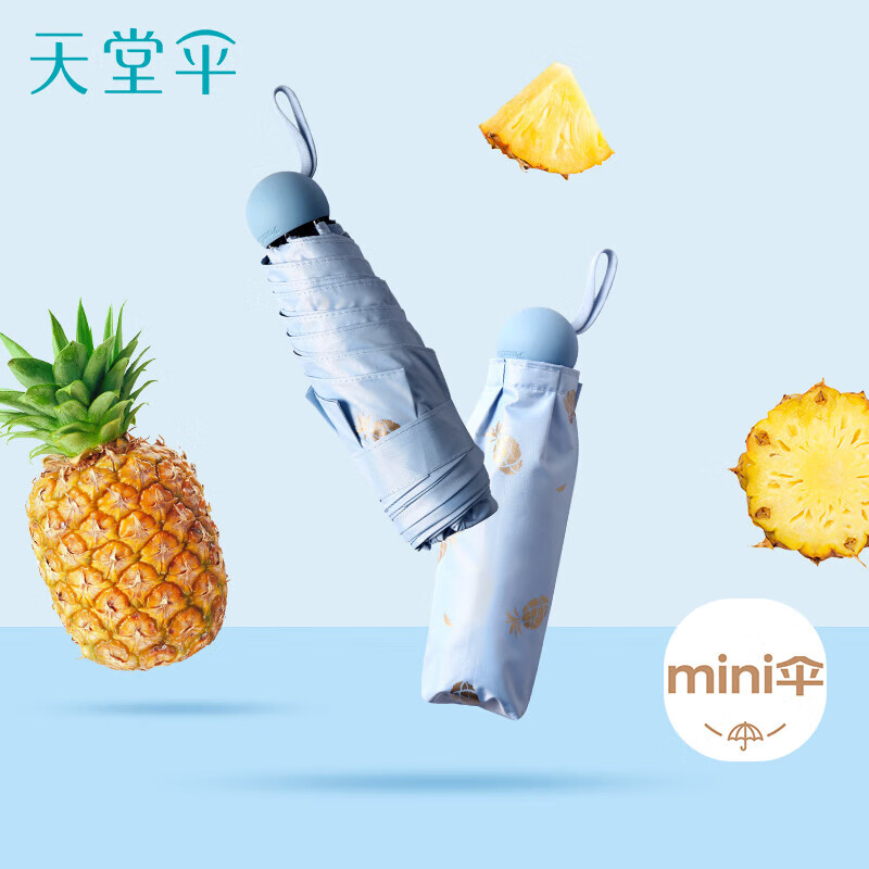 天堂 防紫外线晴雨伞三折 雨伞黑胶防晒太阳伞遮阳晴雨伞 净空蓝