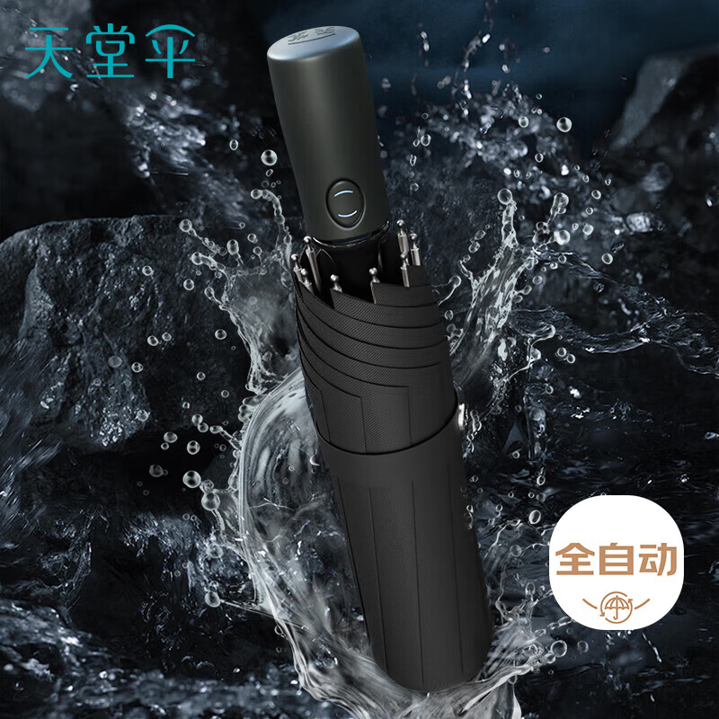 天堂 全自动阳伞三折 全自动折叠太阳伞遮阳伞黑胶防晒伞 黑色