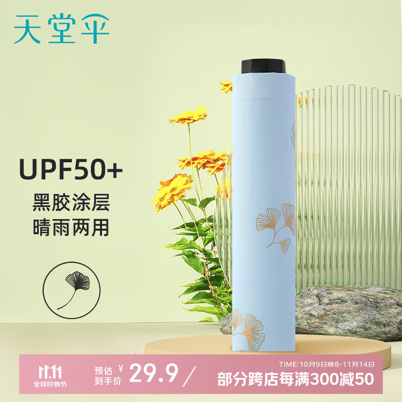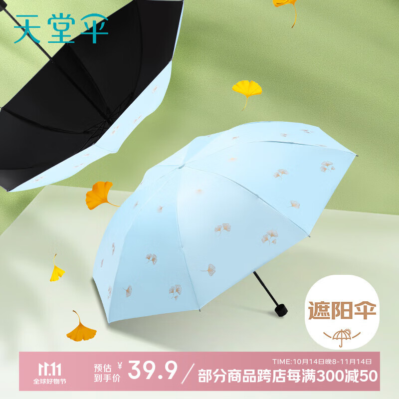 天堂伞太阳伞防晒防紫外线遮阳伞户外伞晴雨两用便携雨伞男女 银杏飞舞-净空蓝