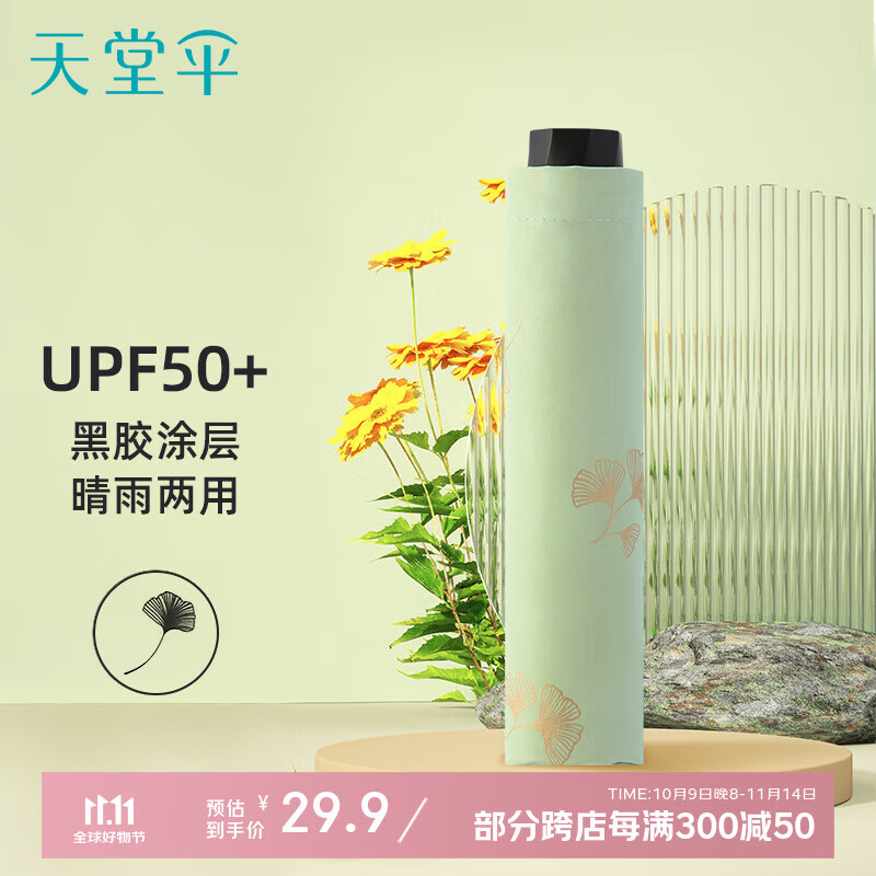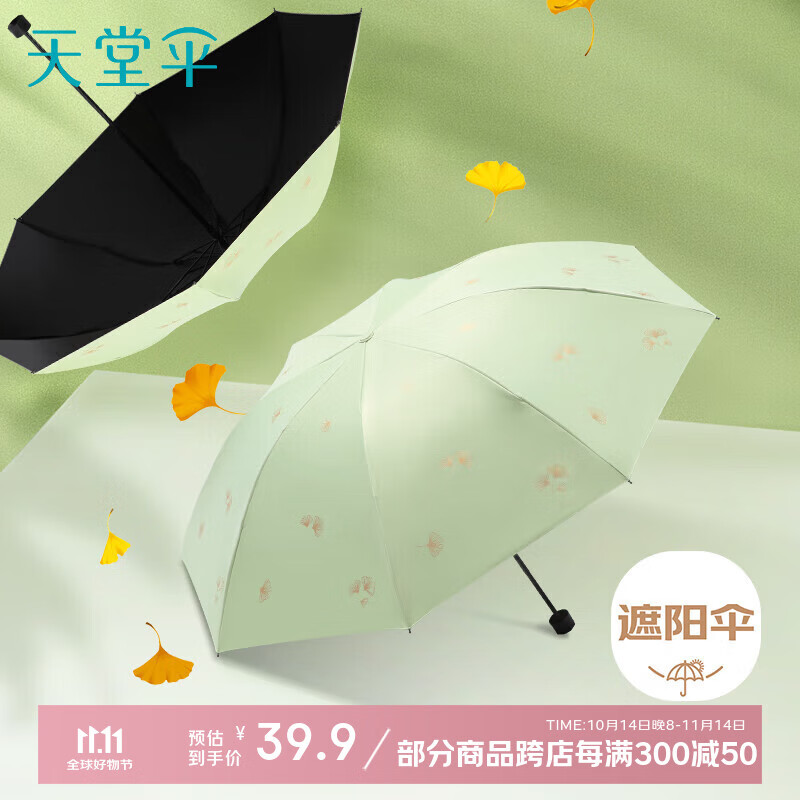 天堂伞太阳伞防晒防紫外线遮阳伞户外伞晴雨两用便携雨伞男女 银杏叶-粉绿