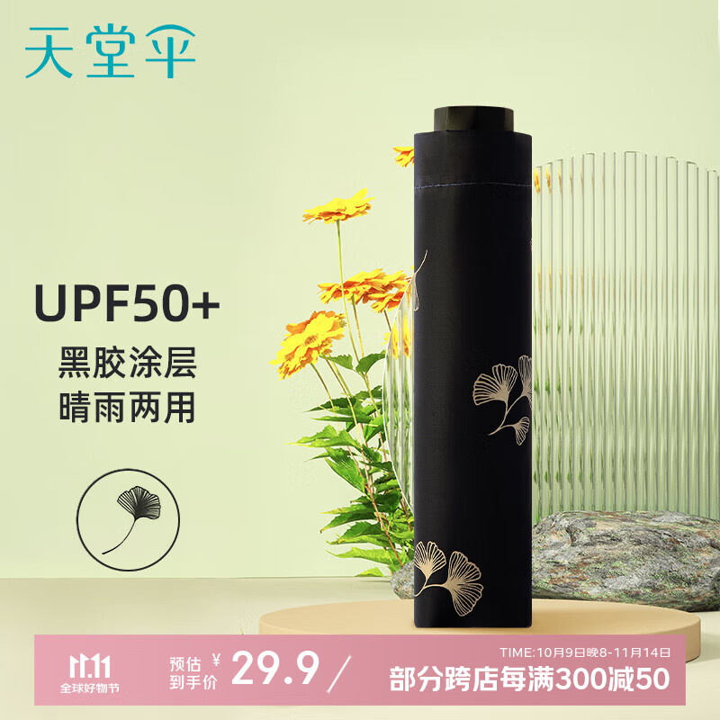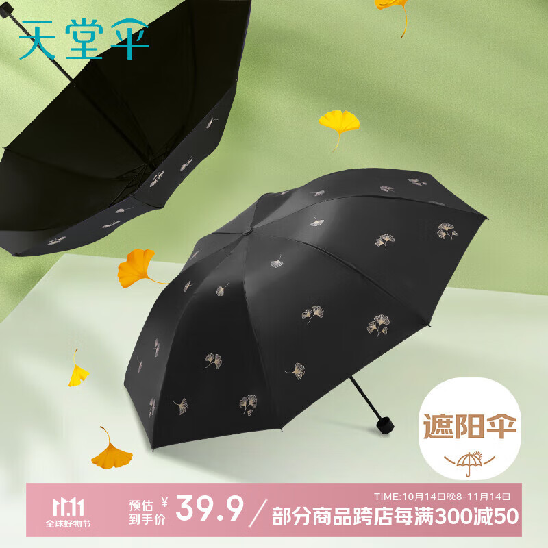天堂伞太阳伞防晒防紫外线遮阳伞户外伞晴雨两用便携雨伞男女 银杏飞舞-黑色