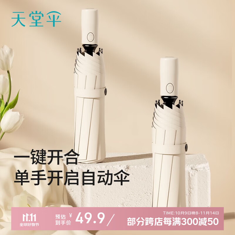 天堂伞抗风拒水全自动晴雨伞便携防晒遮阳伞太阳伞晴雨两用伞男女学生 奶酪色