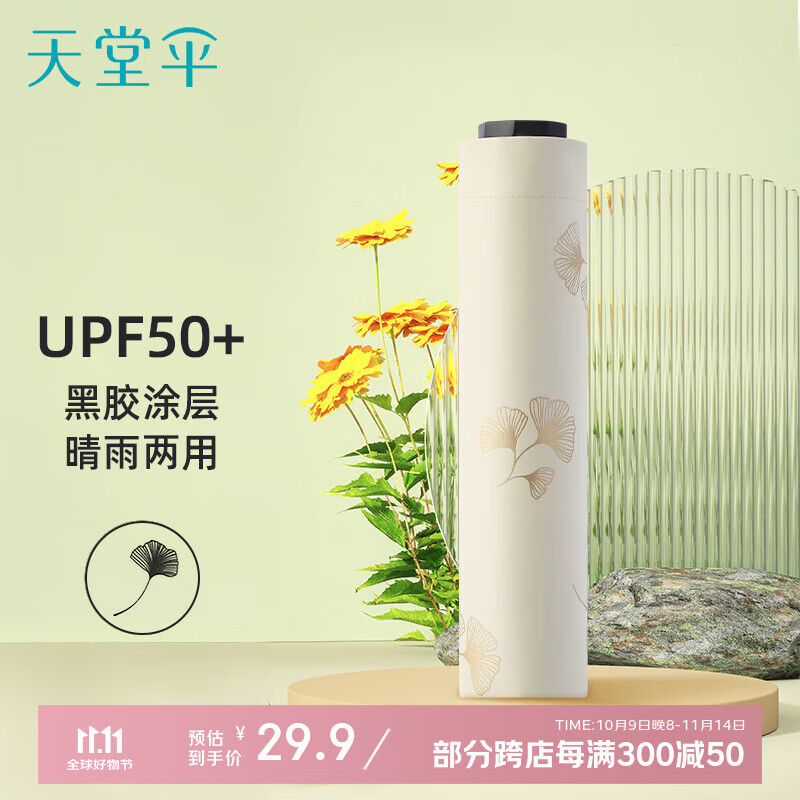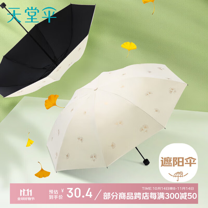 天堂伞太阳伞防晒防紫外线遮阳伞户外伞晴雨两用便携雨伞男女 银杏飞舞-甘酪白