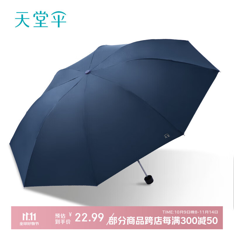 天堂 防晒晴雨伞三折 三折伞防紫外线商务伞升级黑钢伞 藏青