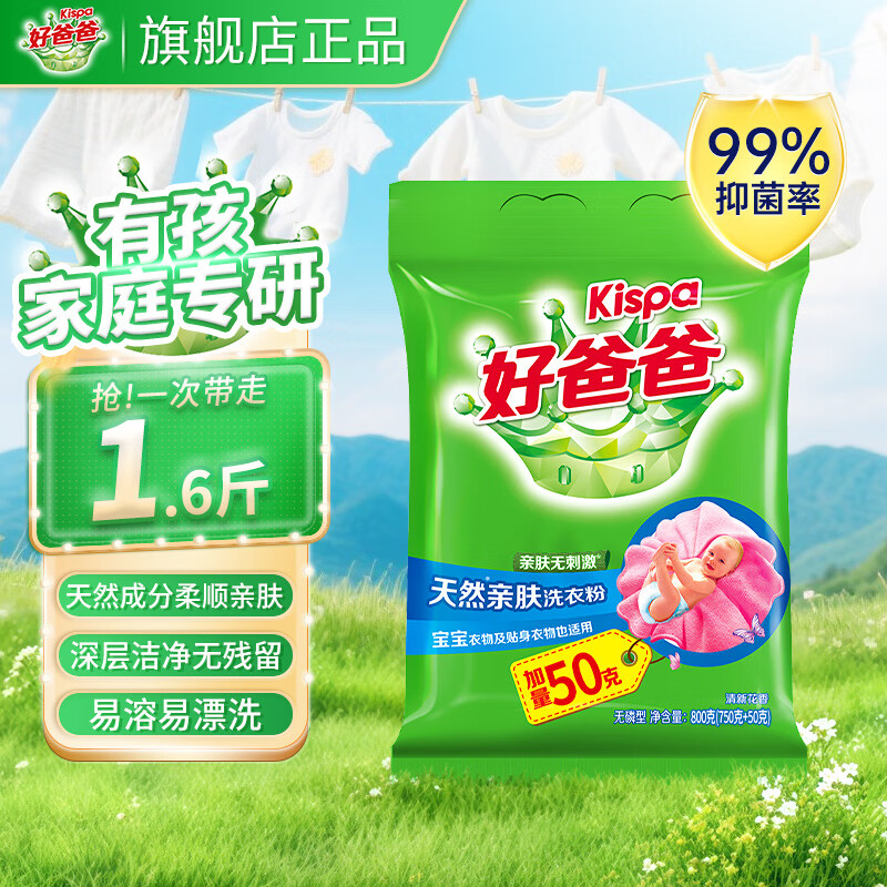 好爸爸天然亲肤洗衣粉99%抑菌率机洗手洗持久留香无刺激深层洁净皂粉 天然亲肤洗衣粉800g