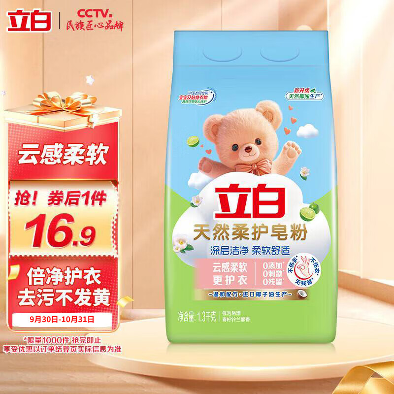 立白天然柔护皂粉2.6斤 深层洁净 柔软舒适 宝宝贴身衣物适用 洗衣粉