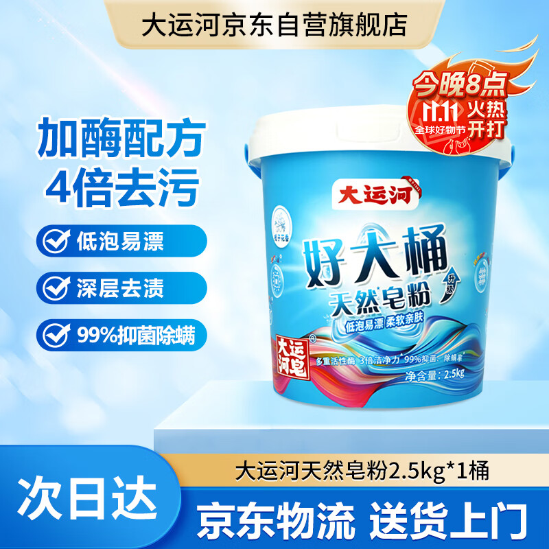 大运河天然皂粉2.5kg桶装持久留香强力去污洗衣粉家用实惠装1桶装