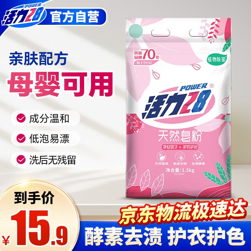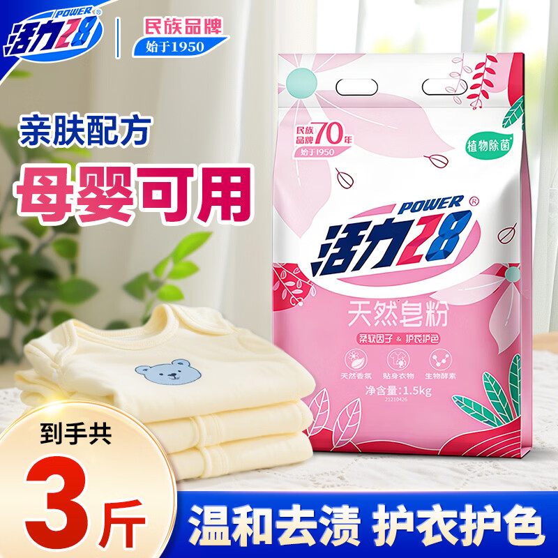 活力28天然皂粉3斤 1.5kg植物亲肤洗衣粉持久留香深层去污 温和无刺激