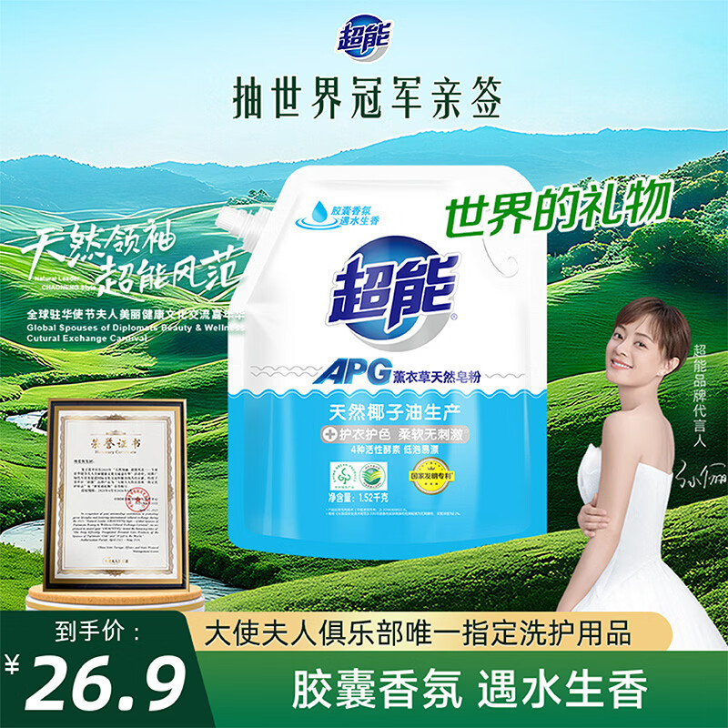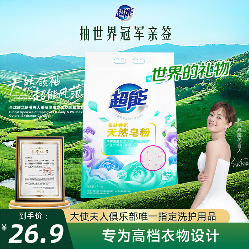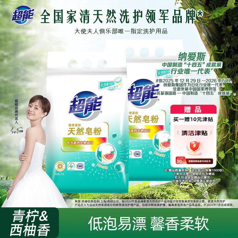 超能 馨香柔软天然皂粉 青柠西柚香 12斤 天然椰油 温和无刺激