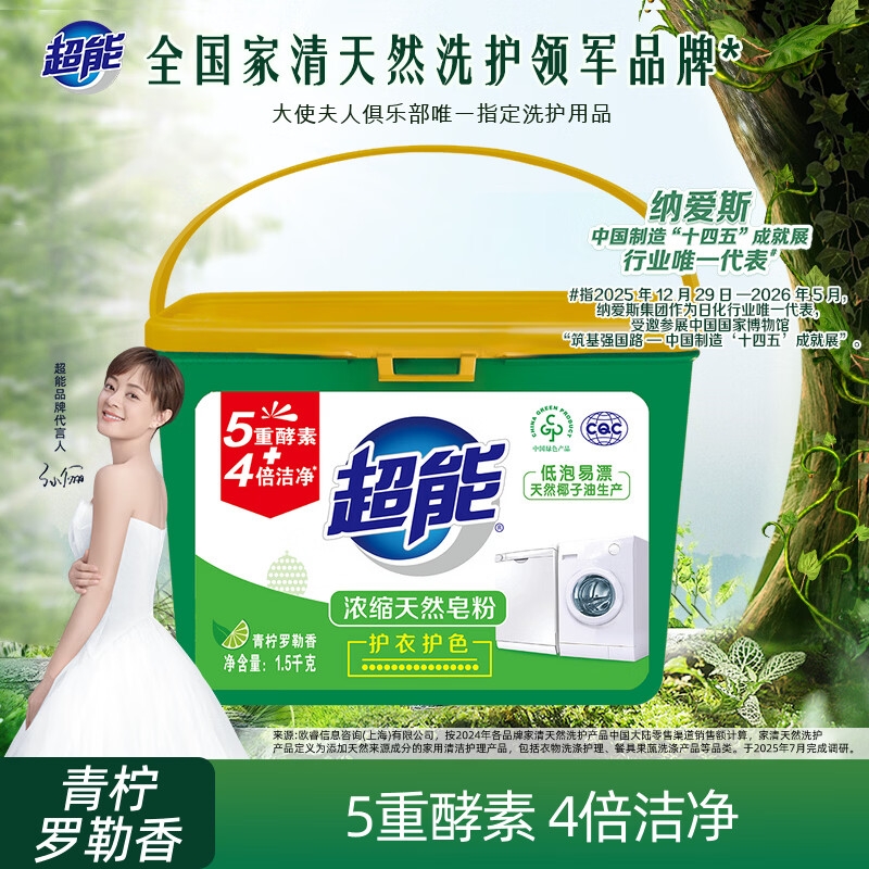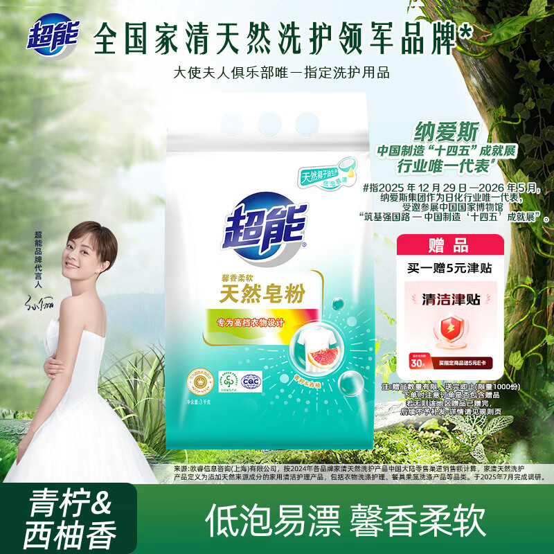 超能 浓缩天然皂粉 青柠罗勒香 3斤 5重酵素 4倍洁净