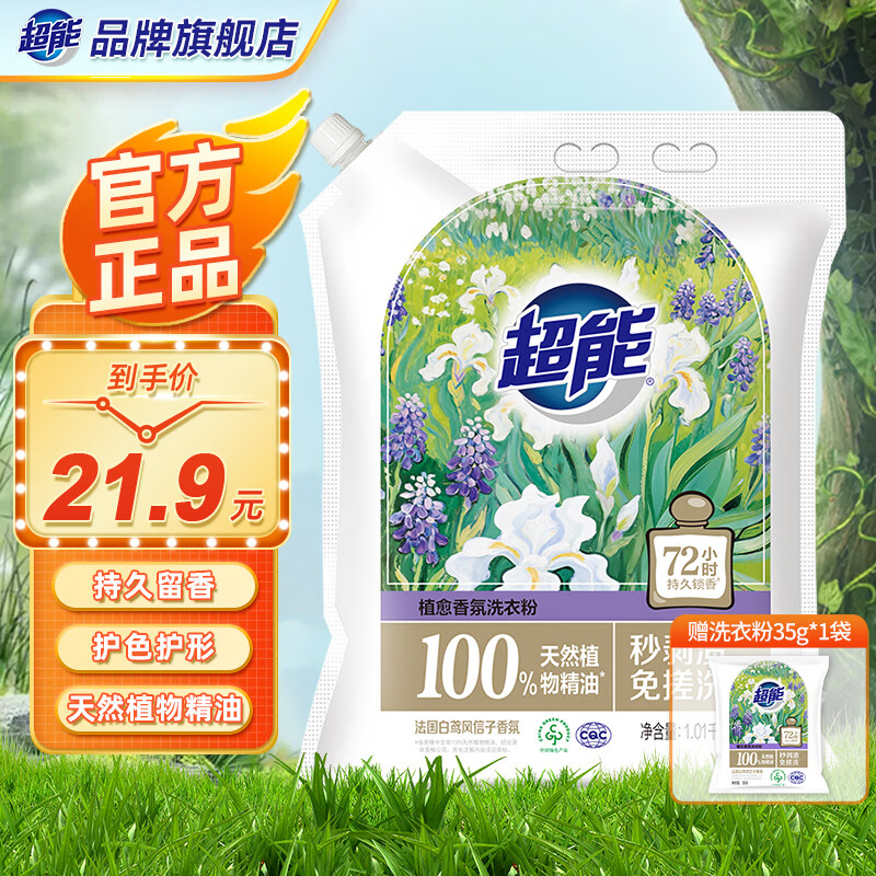 超能植愈香氛天然皂粉 法国白鸢木檀香 720h持久留香 护色护形家用 超能植愈香氛洗衣粉1.01kg