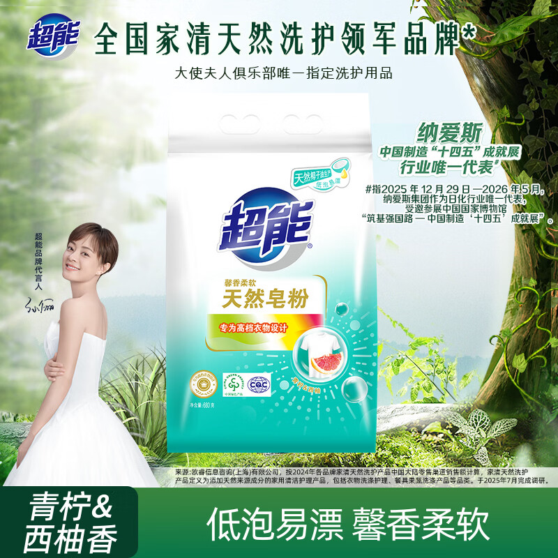 超能 馨香柔软天然皂粉 青柠西柚香 680g 天然椰油 温和无刺激