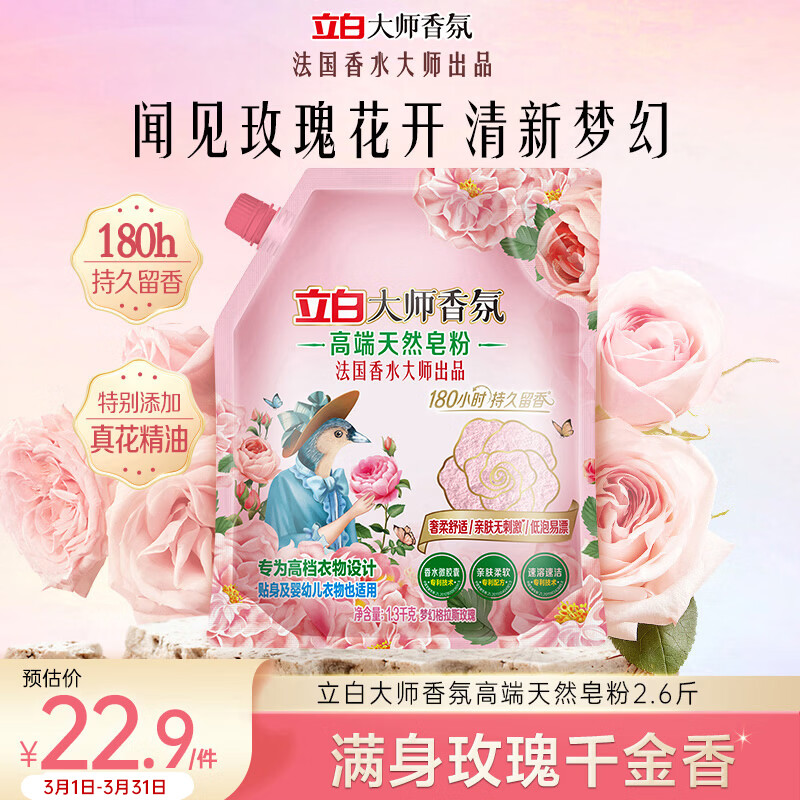 立白大师香氛高端天然皂粉2.6斤 180h持久留香 婴幼儿衣物适用 洗衣粉