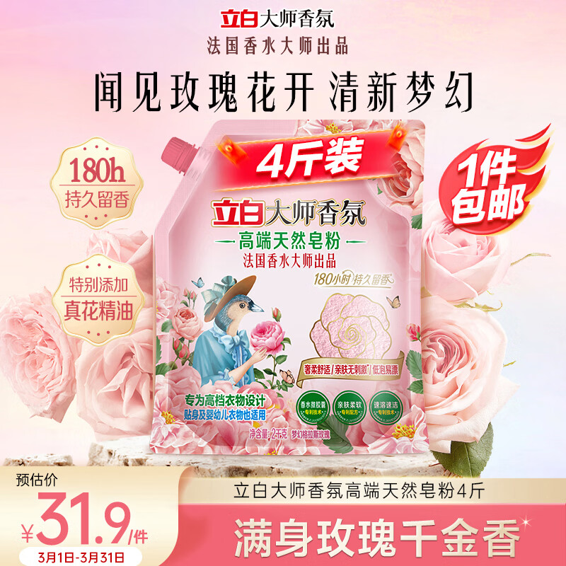 立白大师香氛高端天然皂粉4斤 180h持久留香 婴幼儿衣物适用 洗衣粉