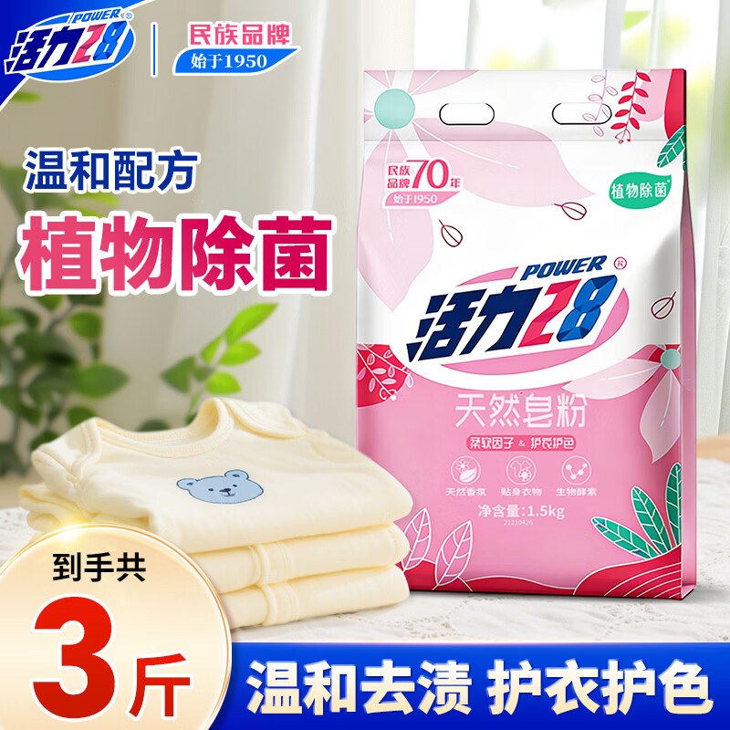 活力28天然皂粉3斤 1.5kg植物亲肤洗衣粉持久留香去污 温和无刺激