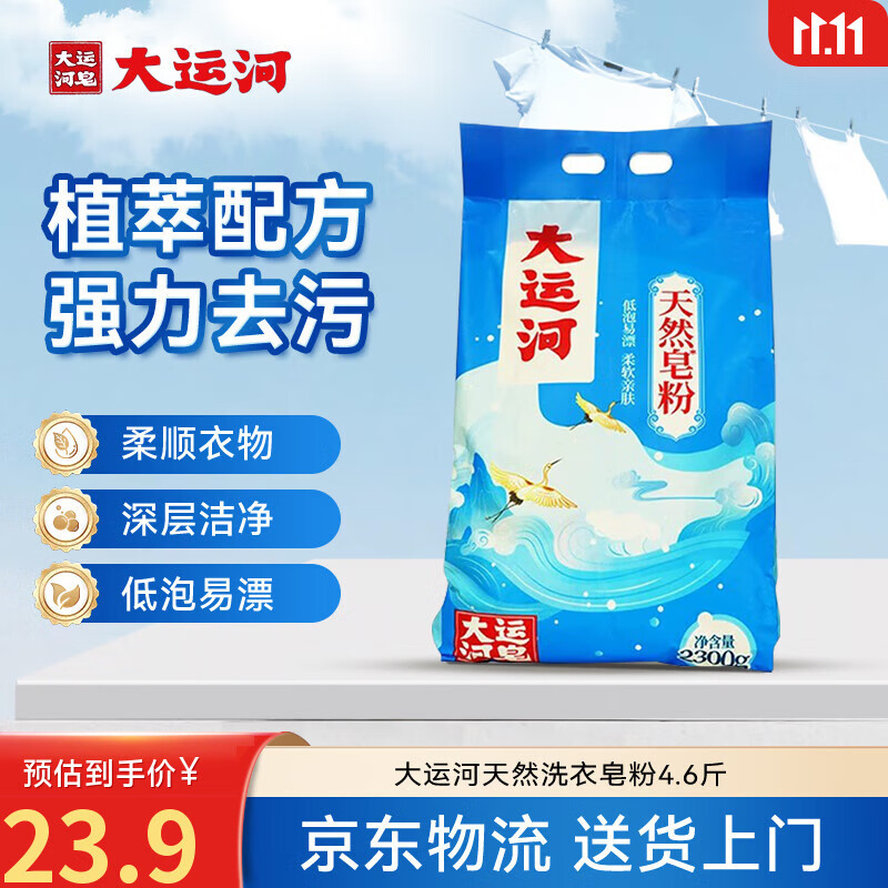 大运河 天然洗衣皂粉4.6斤 刷小白鞋清洗校服衣物去污渍去油温和不伤手