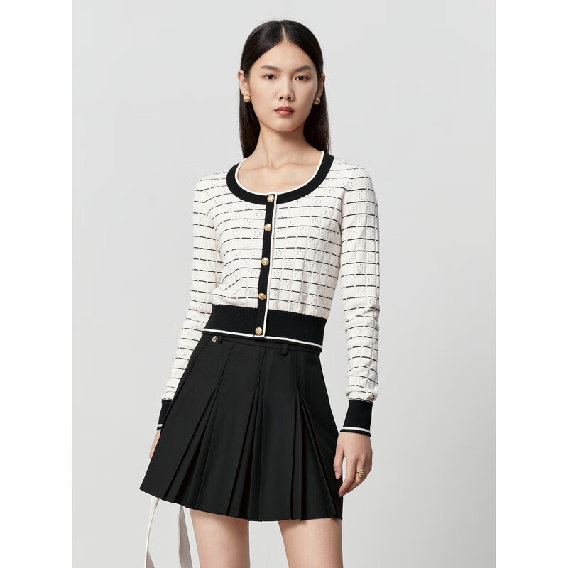 太平鸟女装冬季圆领小香风线套衫A1EED4140 米白 L
