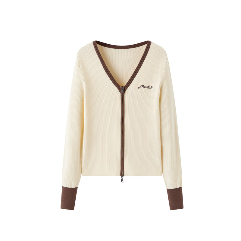 太平鸟女装秋季撞色打底线套衫A1EDD3318 米白 S