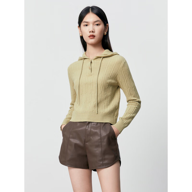 太平鸟女装冬季连帽毛套衫A1EBD4323 浅绿 S