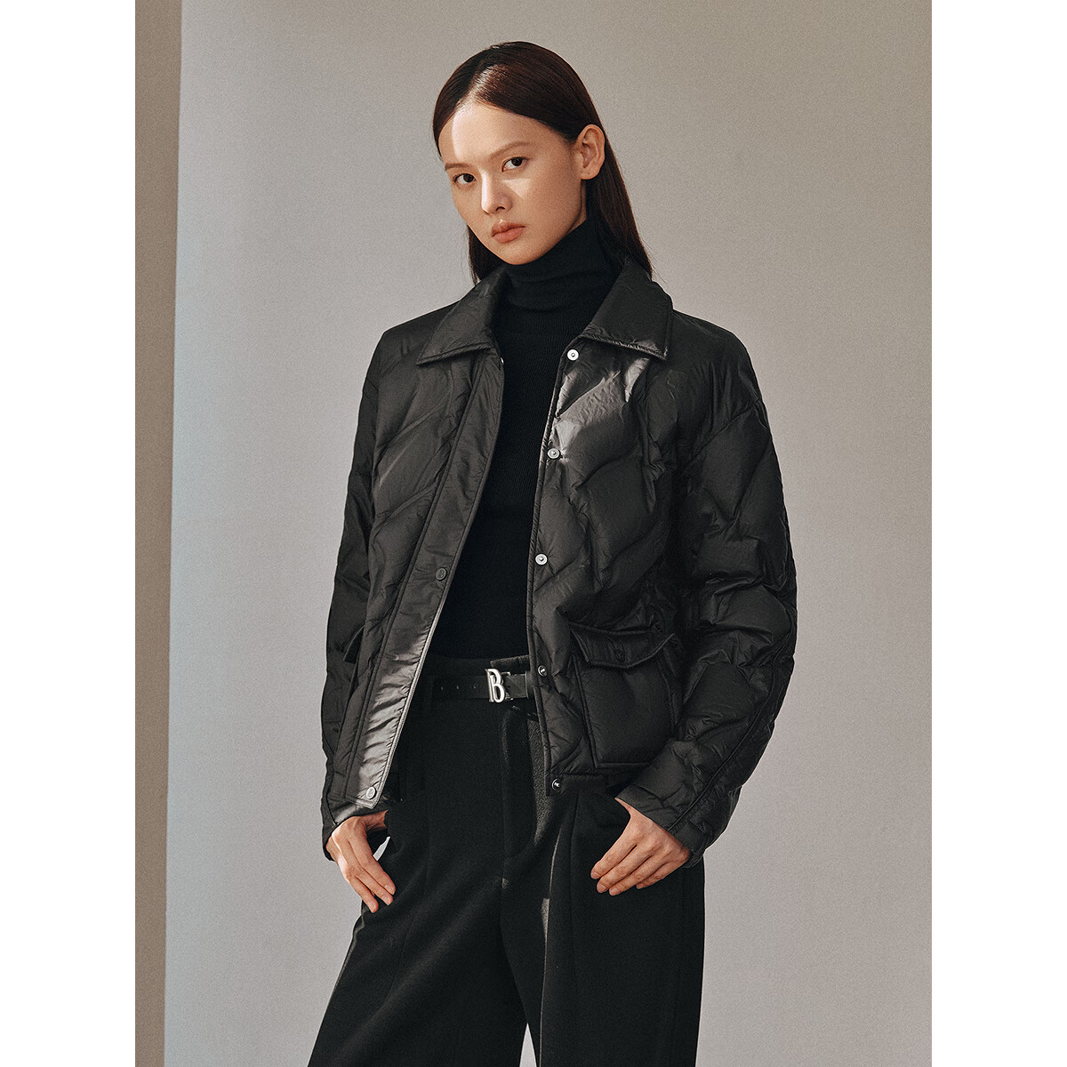 太平鸟女装压胶轻薄羽绒服多巴胺无胆衬衫羽绒休闲外套短 黑色 L