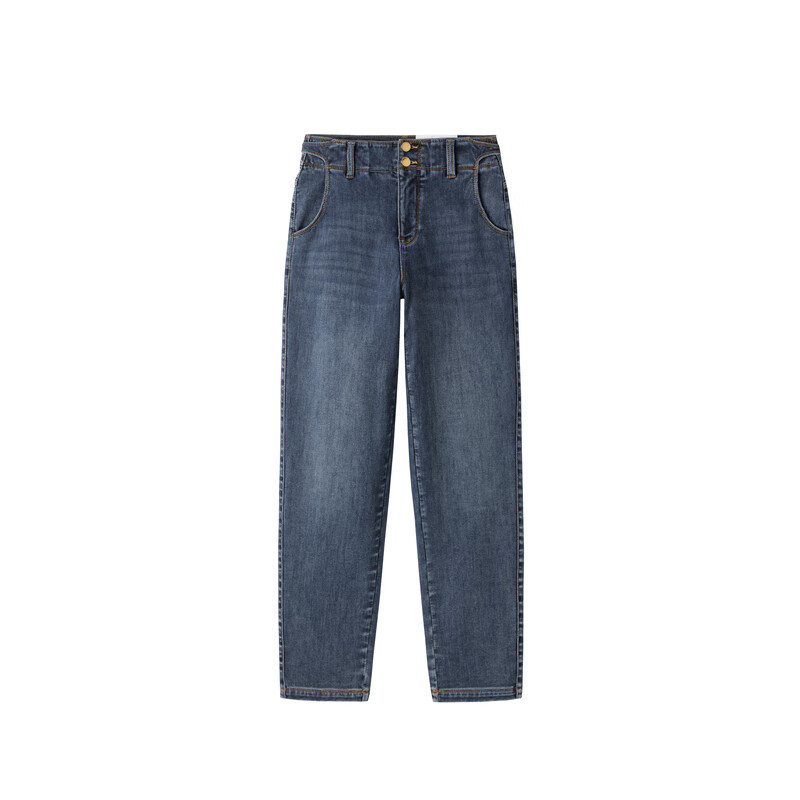 太平鸟【商场同款】女装冬季新款暖感哈伦牛仔裤A3HAD4234 牛仔蓝 S
