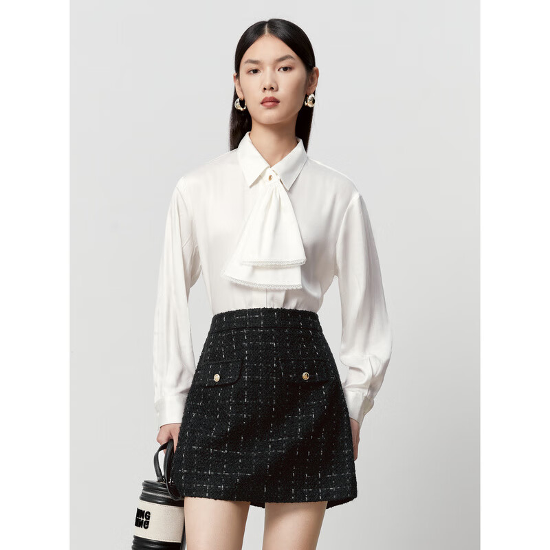 太平鸟女装冬季领结提花衬衫A1CAD4182 白色 XL