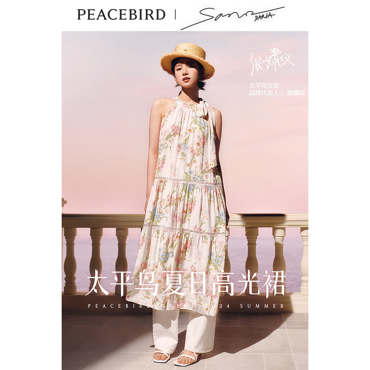 太平鸟【张婧仪同款】女装挂脖连衣裙度假碎花吊带裙夏A1FAE2514 彩色纹样 L