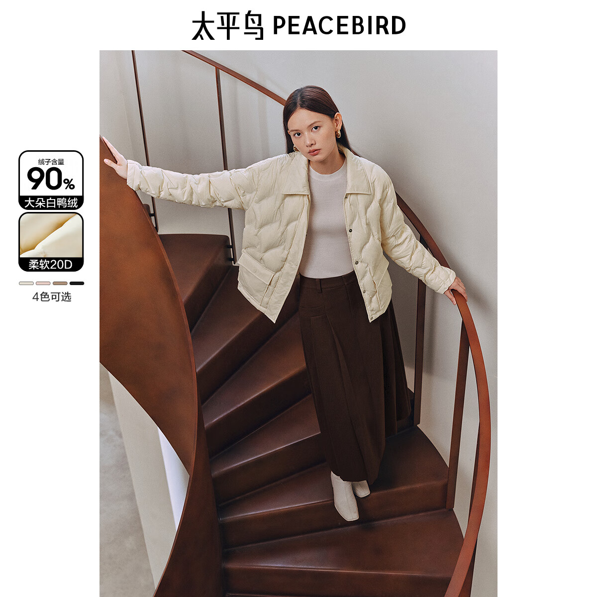 太平鸟女装羽绒服轻薄多巴胺无胆衬衫羽绒休闲外套短款 米白色 M