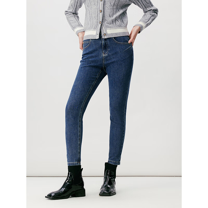 太平鸟女装冬季四面弹小脚牛仔裤A1HAD4350 牛仔蓝 S