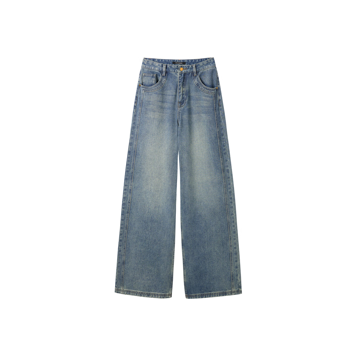 太平鸟女装牛仔裤秋季大直筒裤时尚休闲百搭通勤质感 牛仔中蓝 M