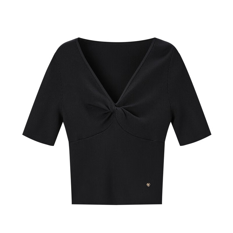 太平鸟女装斯文扭结线套衫A1EED3103 黑色 M 160