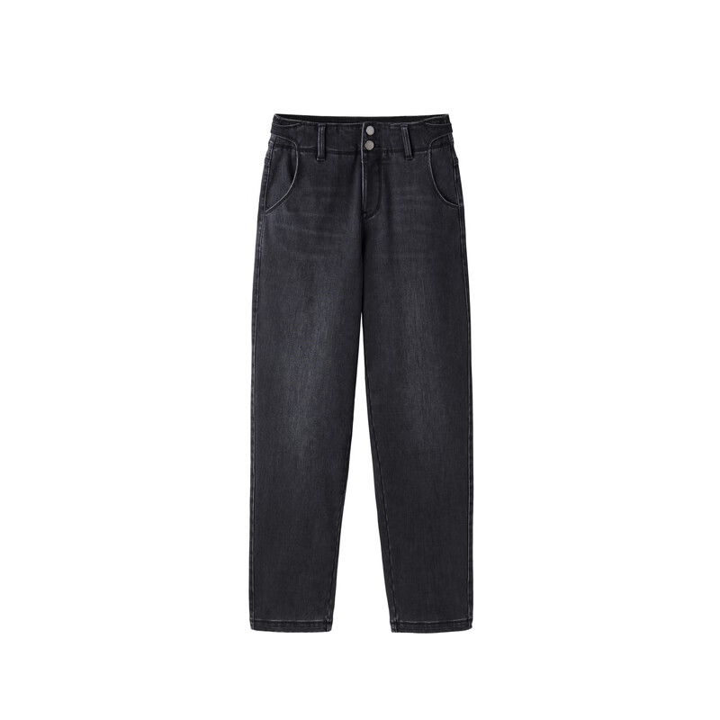 太平鸟【商场同款】女装冬季新款暖感哈伦牛仔裤A3HAD4234 黑灰 S