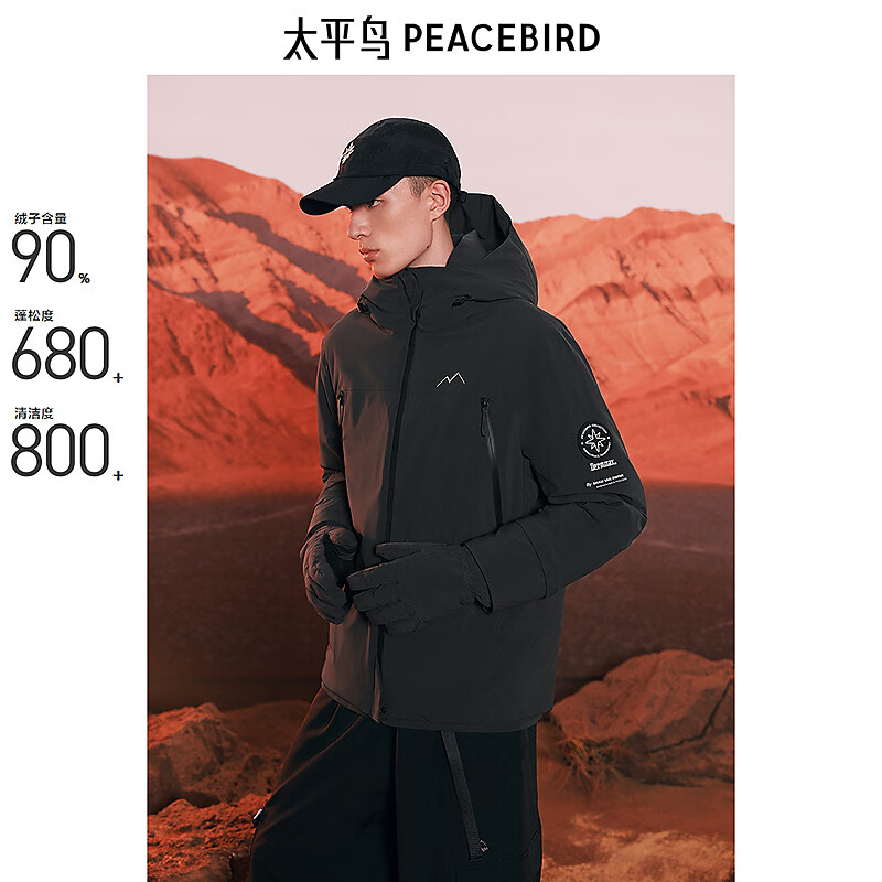 太平鸟男装 【95%进口鸭绒】连帽羽绒服冬面包服防寒短款排骨外套 15D暗影黑(阔型)第二批 M