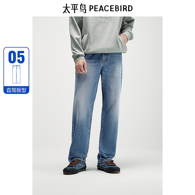 太平鸟男装牛仔裤男秋季宽松直筒牛仔裤潮牌双色水洗浅色全棉牛仔 普蓝色 第一批 32