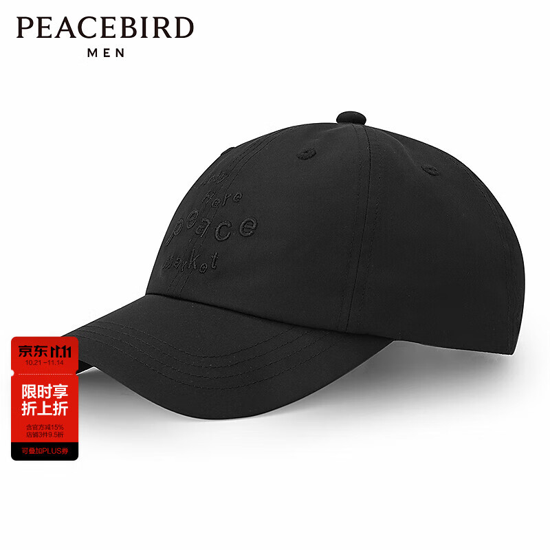 太平鸟男装刺绣棒球帽夏季情侣多色鸭舌帽显脸小通勤帽子 黑色(均码) 均码