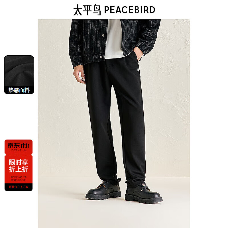 太平鸟男装【蓄热】休闲裤冬季保暖宽松西裤抽绳商务西装裤 黑色 第一批 37