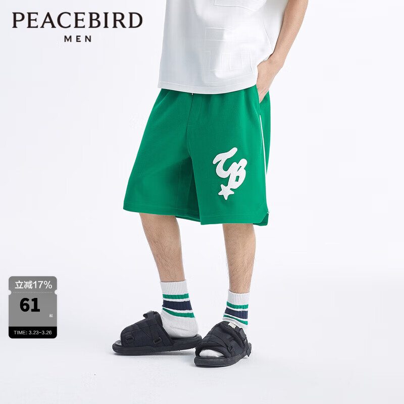 太平鸟男装 夏季直筒休闲裤潮流男生中短裤B1GND2157 绿色(直筒) M