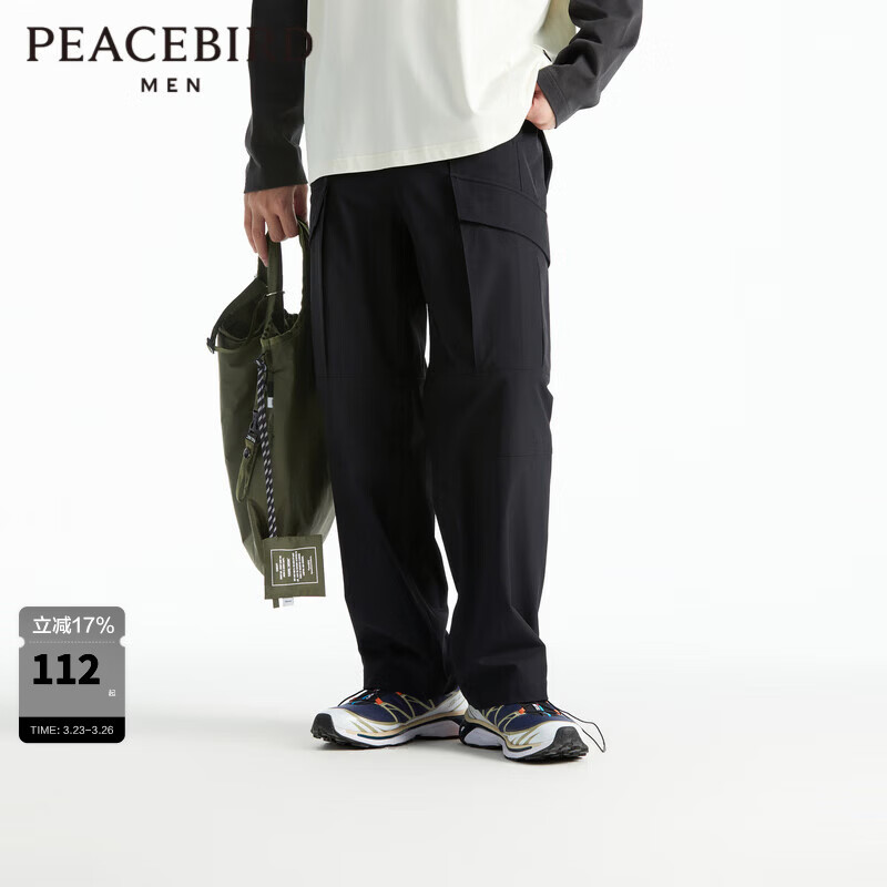 太平鸟男装 【潮流户外】秋季大口袋工装裤男休闲裤B2GLD3301 黑色1(直筒) XL