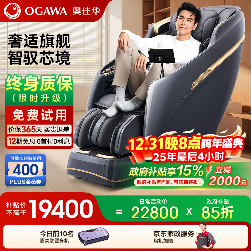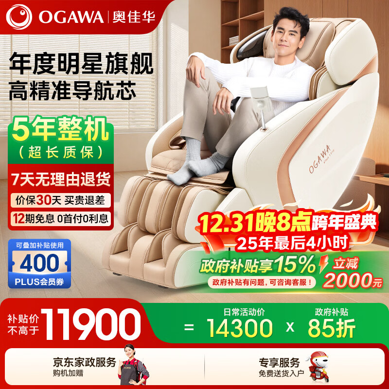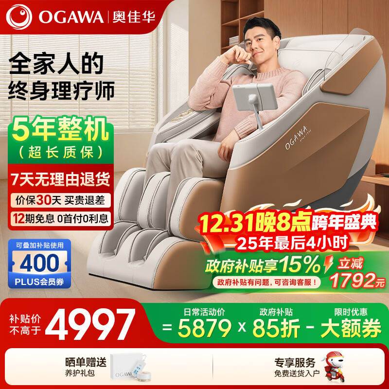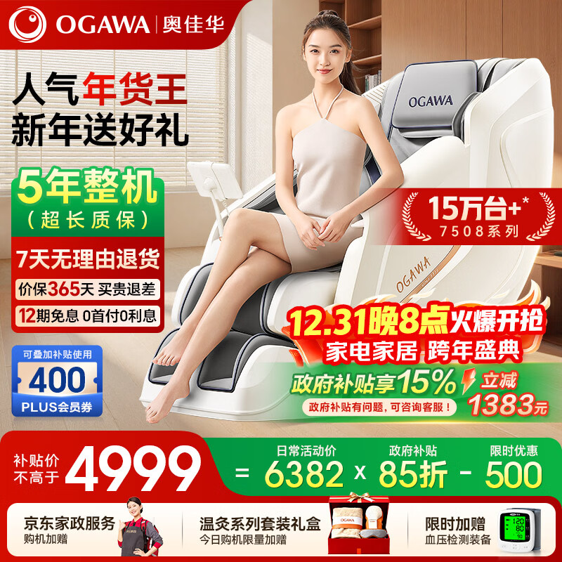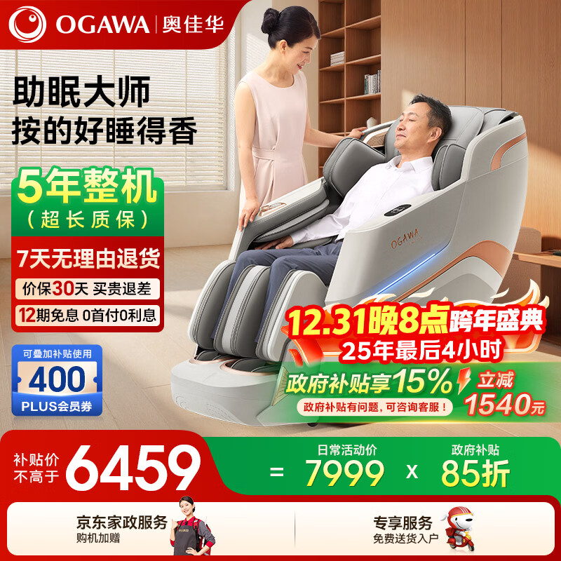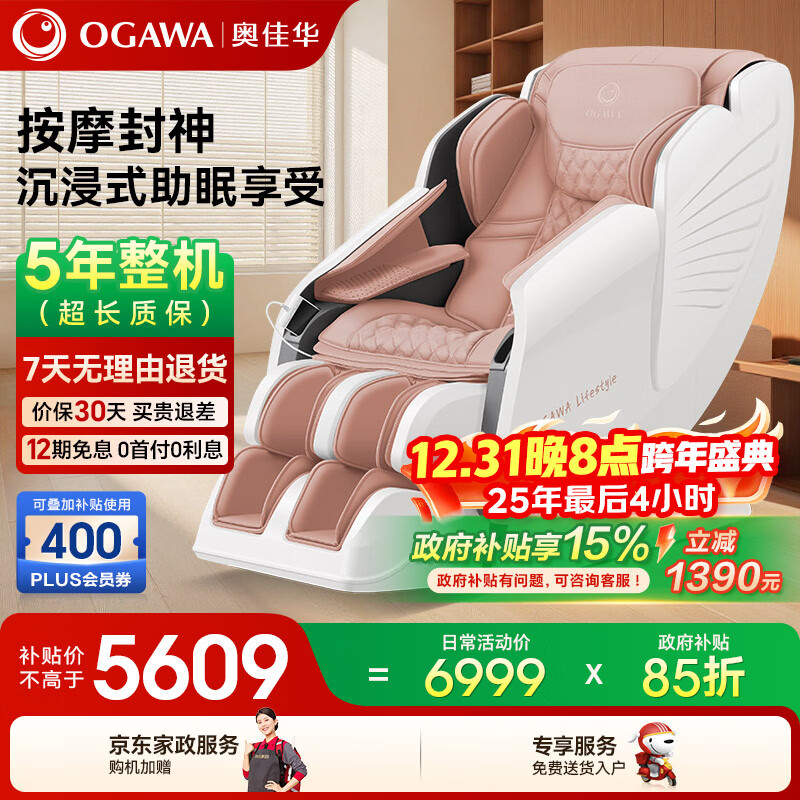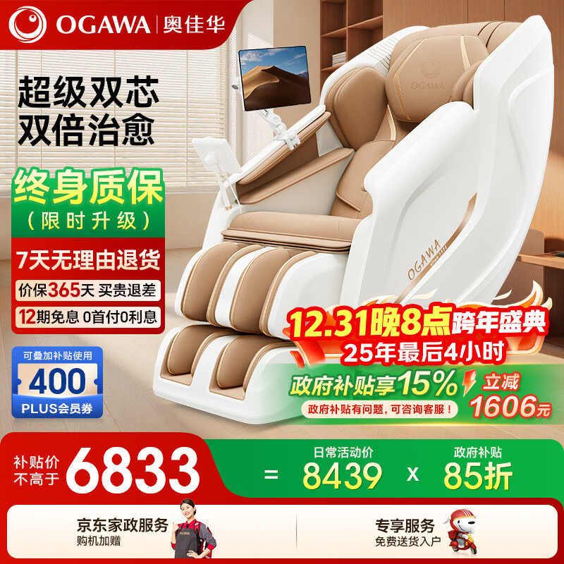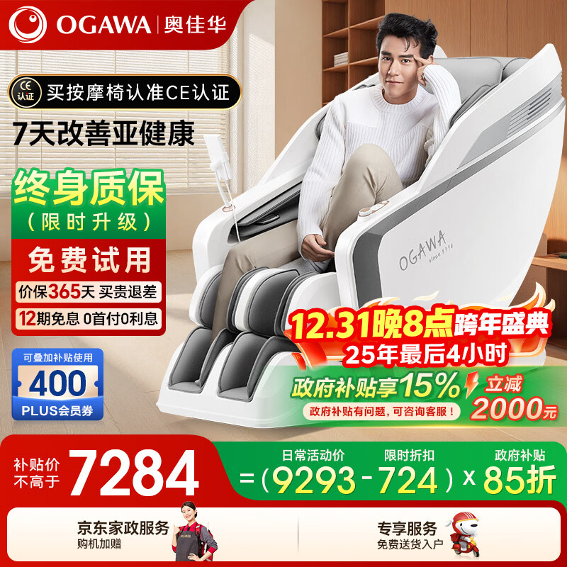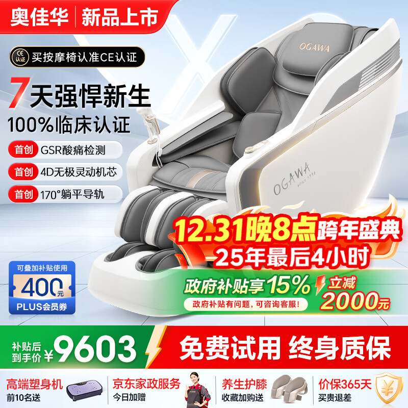 奥佳华(OGAWA)家电政府补贴按摩椅2025十大品牌家用太空舱全身按摩沙发多功能椅4D机芯送父母元旦节礼物7608TEN+ 4.0【厂送专拍,下单联系客服告知颜色】