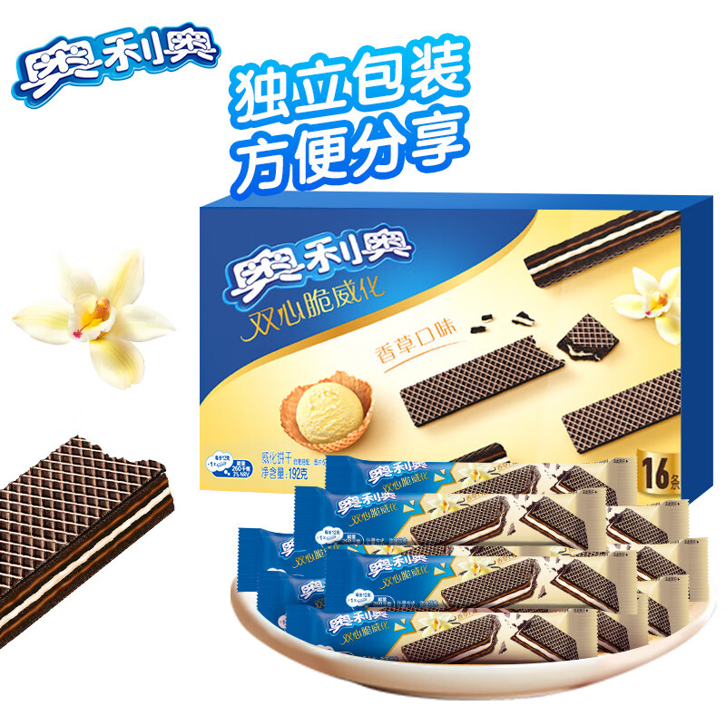 奥利奥(Oreo)双心脆威化饼干 香草味 192g 办公室休闲零食早餐 下午茶16条装